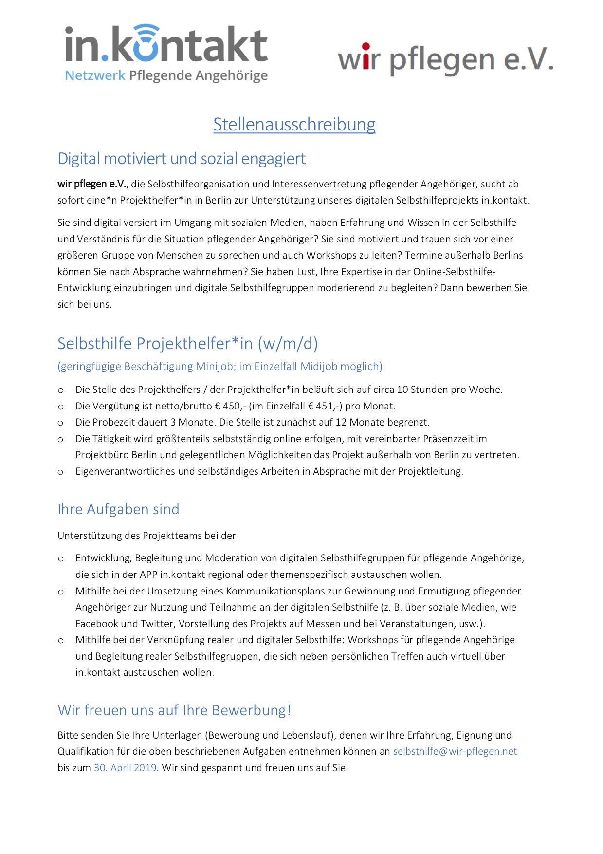Schwerpunktthema des Vereins wir pflegen e.V. – www.wir-pflegen.net
