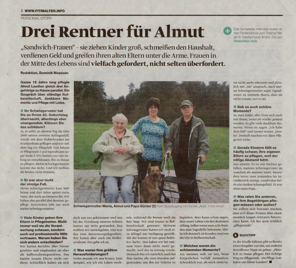 „Wichtig ist es, dass wir pflegenden Angehörige auf uns aufpassen, denn wenn wir nicht mehr können – ist es sehr schlecht bestell für die pflegebedürftigen Familienmitglieder!“ sagt Almut Laudien – Recht hat sie!!