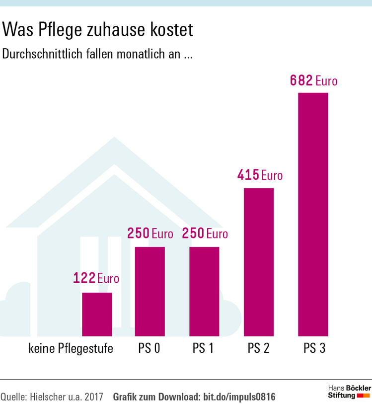 Dies geht aus einer aktuellen Studie von Volker Hielscher, Sabine Kirchen-Peters und Lukas Nock hervor. Die Wissenschaftler vom Iso-Institut für Sozialforschung und Sozialwirtschaft in Saarbrücken haben im Auftrag der Hans-Böckler-Stiftung bundesweit , in denen Pflegebedürftige ab 65 Jahren leben – mit und ohne Einstufung in der Pflegversicherung.